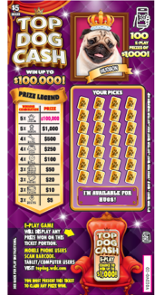 NOTE: The E-PLAY GAME will display any prize amount won on the E-PLAY GAME portion of the TOP DOG CASH ticket. YOU MUST PRESENT THE TOP DOG CASH TICKET TO CLAIM ANY PRIZE AMOUNT WON.